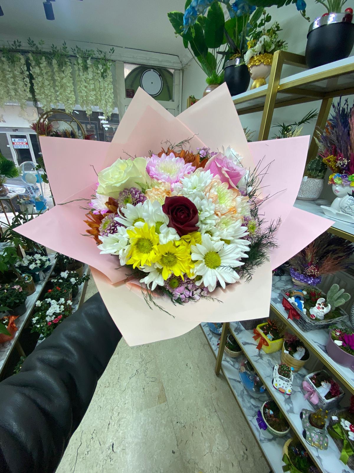Stok durumuna göre ürün görseline uygun renklerde çiçek ve buket kâğıt renkleri değişiklik gösterebilir.