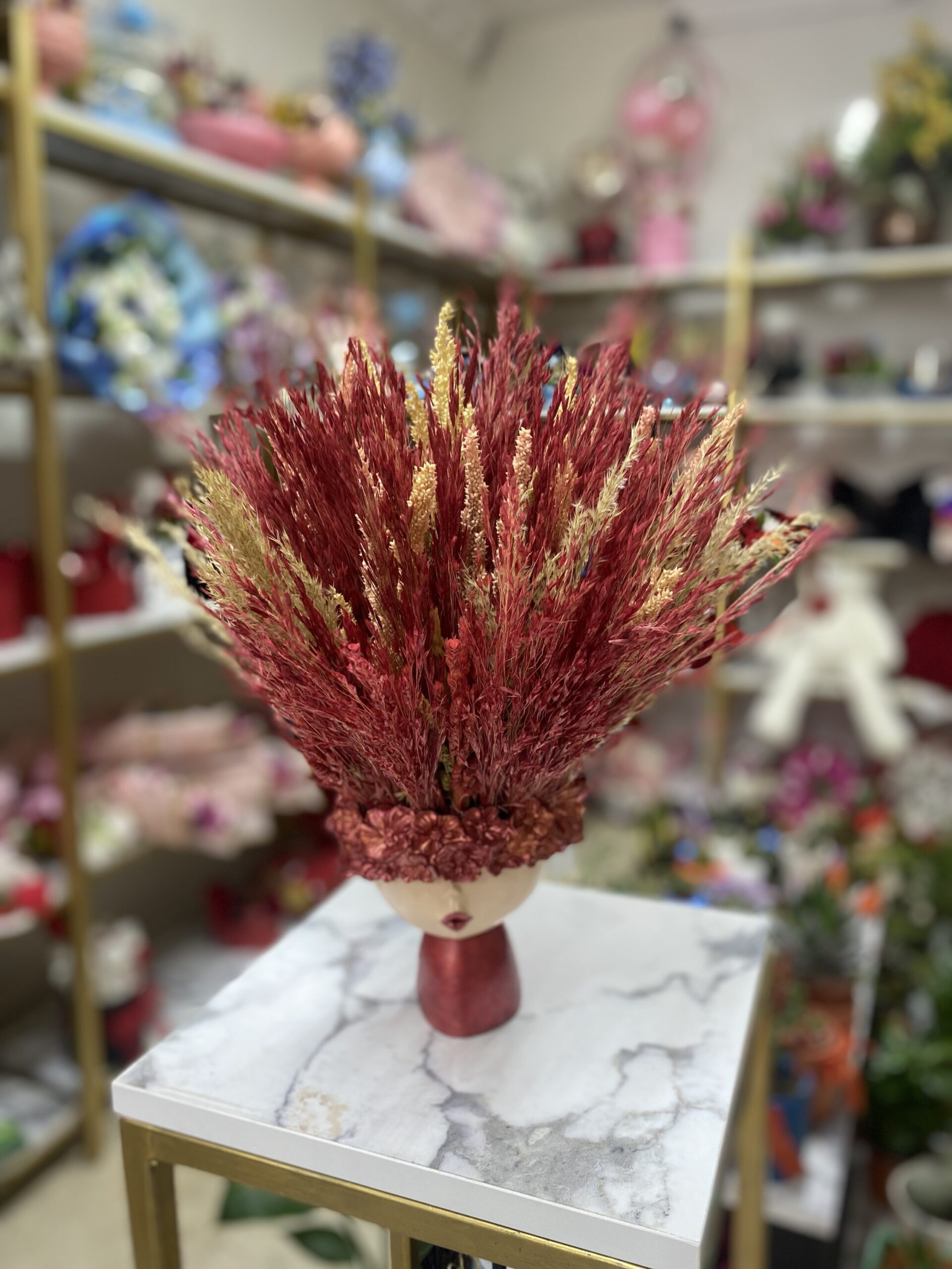 Kuru çiçek kırmızı renk orta boy saksı